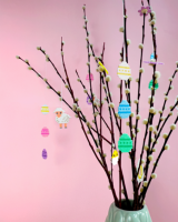 Velikonoční ozdoby: Malá vajíčka, kuřátka a zajíčci udělají z větviček ve váze krásnou jarní dekoraci.