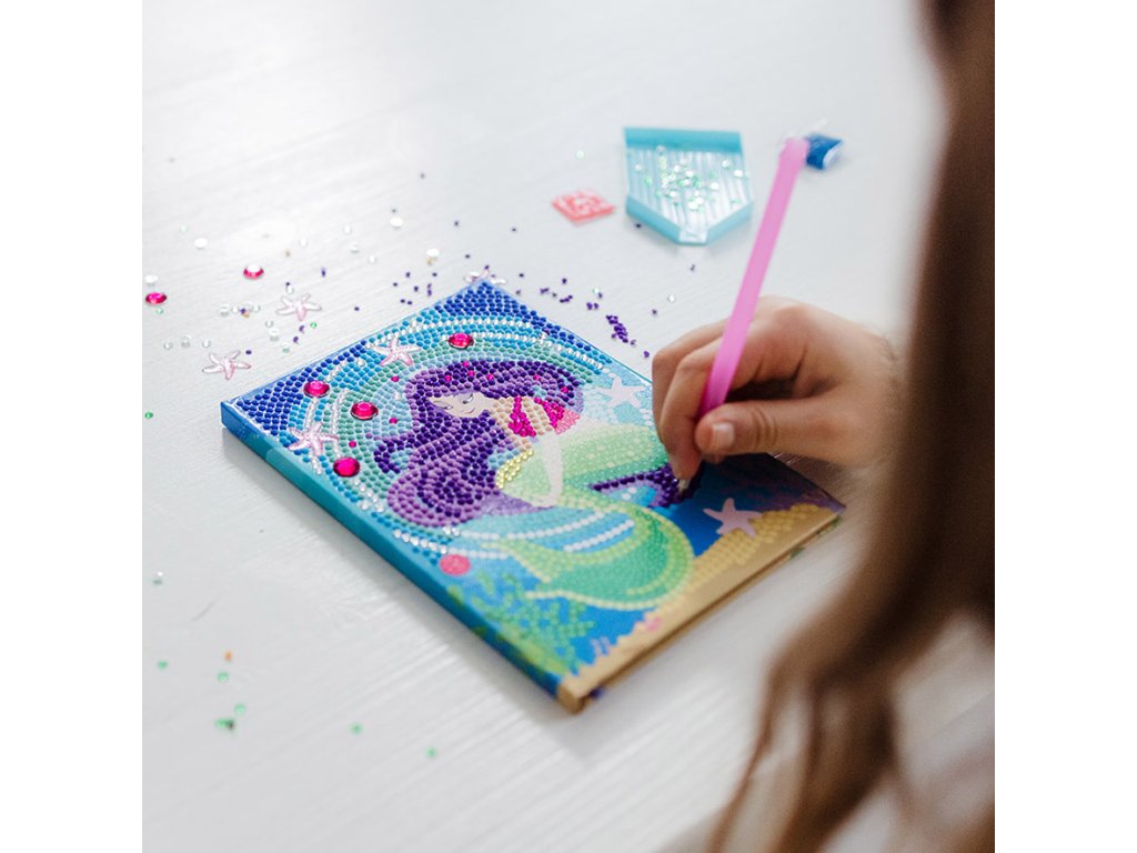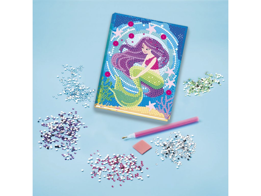 Obsahuje deník o rozměrech 13x18 cm, voskovou hmotu, cca 1500 ks kamínků, zásobník na kamínky, stylus na přenos kamínků a návod k použití.
