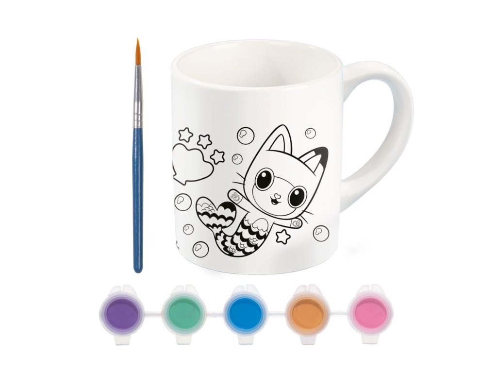 Malování hrnečku - vymaluj si hrneček s motivem Gabby podle svých představ.